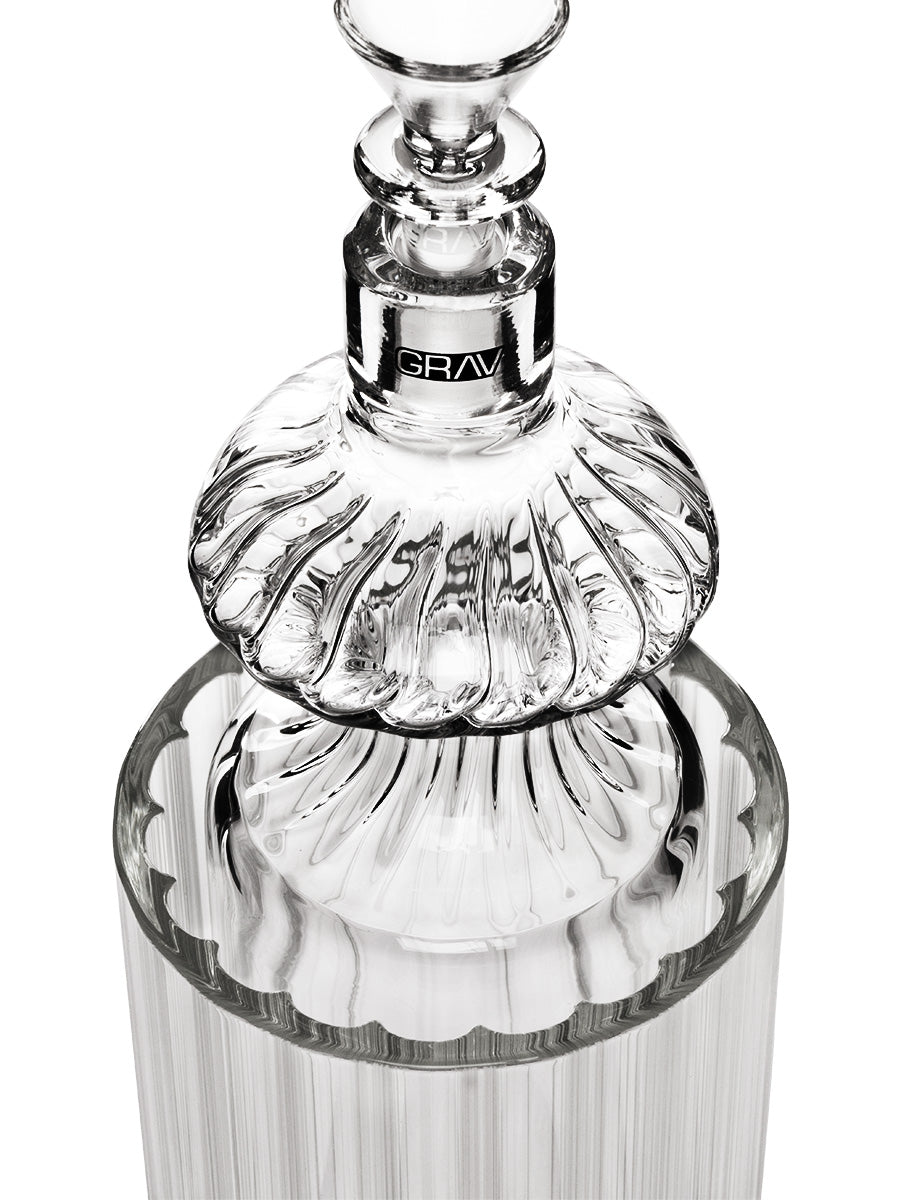 We are proud to introduce the new GRAV Monarch Gravity Bong, meticulously crafted from high-quality borosilicate glass. The Monarch boasts a unique and tasteful design, featuring heavy scalloping on the sides and a curved restriction for extra grip. The easy-grip mouthpiece ensures that every hit is comfortable and satisfying.