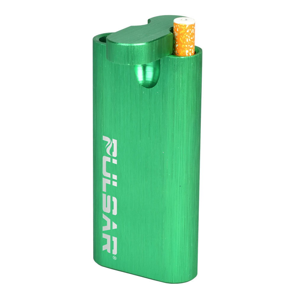 The Pulsar Anodized Aluminum Dugout is a quintessential smoker's on-the-go tool. Features an easy twist top and a spring-loaded aluminum taster bat. A hollow chamber on the other side stores ground up herbs. Plunge the end of your taster bat into your herbs to fill it and get a quick hit while you are on the go.