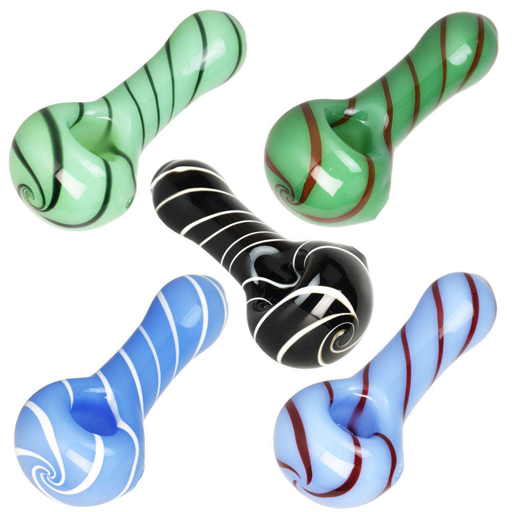 Single Line Swirl Glass Spoon Pipe - 3.75" / Colors Vary